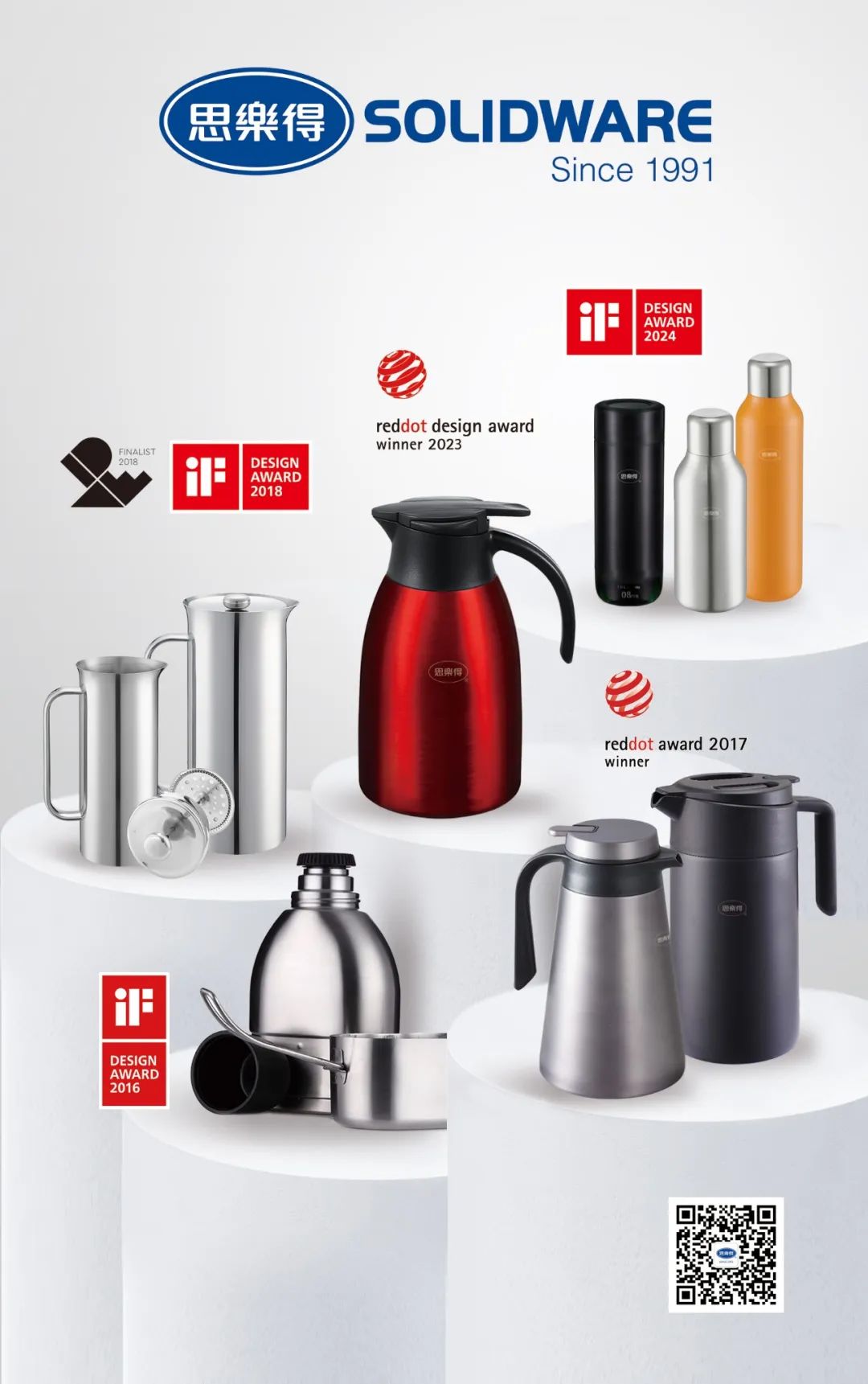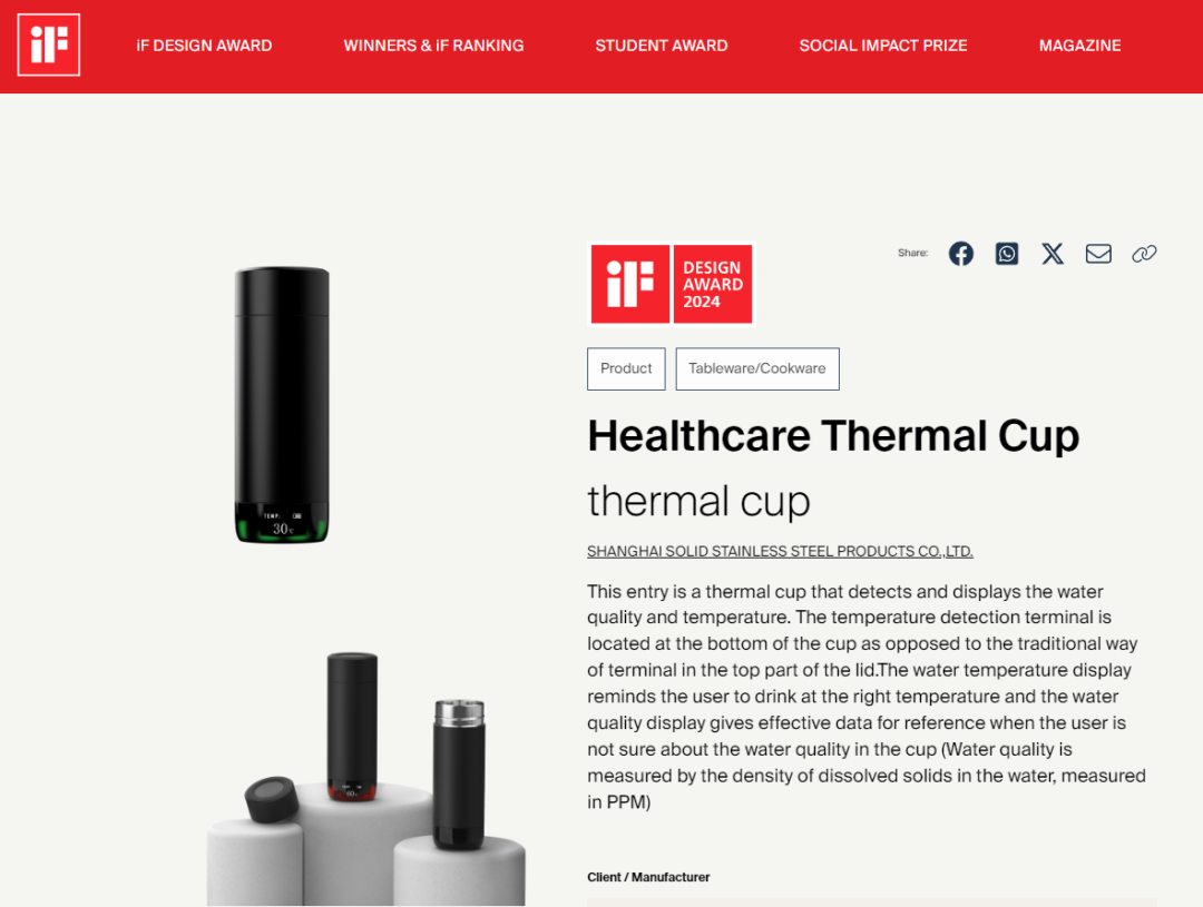 作为上海市市级企业技术中心、上海市市级工业设计中心、中国日用杂品工业设计中心(杯壶)的思乐得,近几年来研发团队专注技术领域创新、产品功能创新,外观设计创新,200多项专利及各大国内外专业奖项不断收入囊中。在两款产品喜获“iF”国际大奖的同时,2023年度上海市市级企业技术中心评价结果公布中,思乐得被评定为良好。